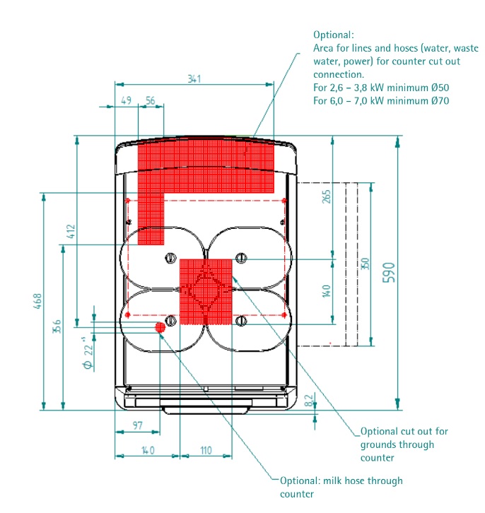 - LED illumination, automatic height-adjustable cup table, and customisable interface to fit high-end service environments.